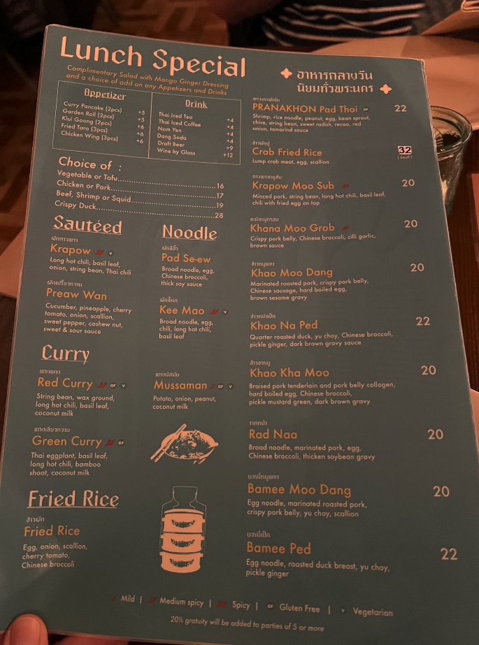 Pranakhon Thai Restaurant, located at 88 University Pl in New York, offers a diverse menu featuring authentic Thai dishes. From classic green, red, and mussaman curries to flavorful pad Thai and crispy fried rice options, Pranakhon has something for everyone. The restaurant provides a trendy and classy dining experience with wheelchair access, online ordering, and free Wi-Fi. Customers rave about the delicious food, with standout dishes like curry pancake, pad seew, and crab fried rice receiving high praise. The restaurant's spacious and modern interior, attentive service, and unique Thai Tea Slushie add to the overall dining experience. Whether you're a Thai cuisine enthusiast or looking to try something new, Pranakhon Thai Restaurant is a must-visit spot in NYC.